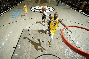 体育资讯3月19日讯 NBA常规赛,湖人对阵火箭,詹姆斯屡献惊天暴扣。