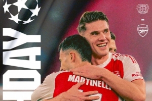 阿森纳官方社媒发布了为此役制作的海报,约克雷斯、马丁内利出镜。