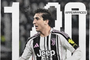 尤文官方也在社交媒体晒出海报,并配文写道:“祝贺米雷蒂代表尤文图斯出战100场比赛。”